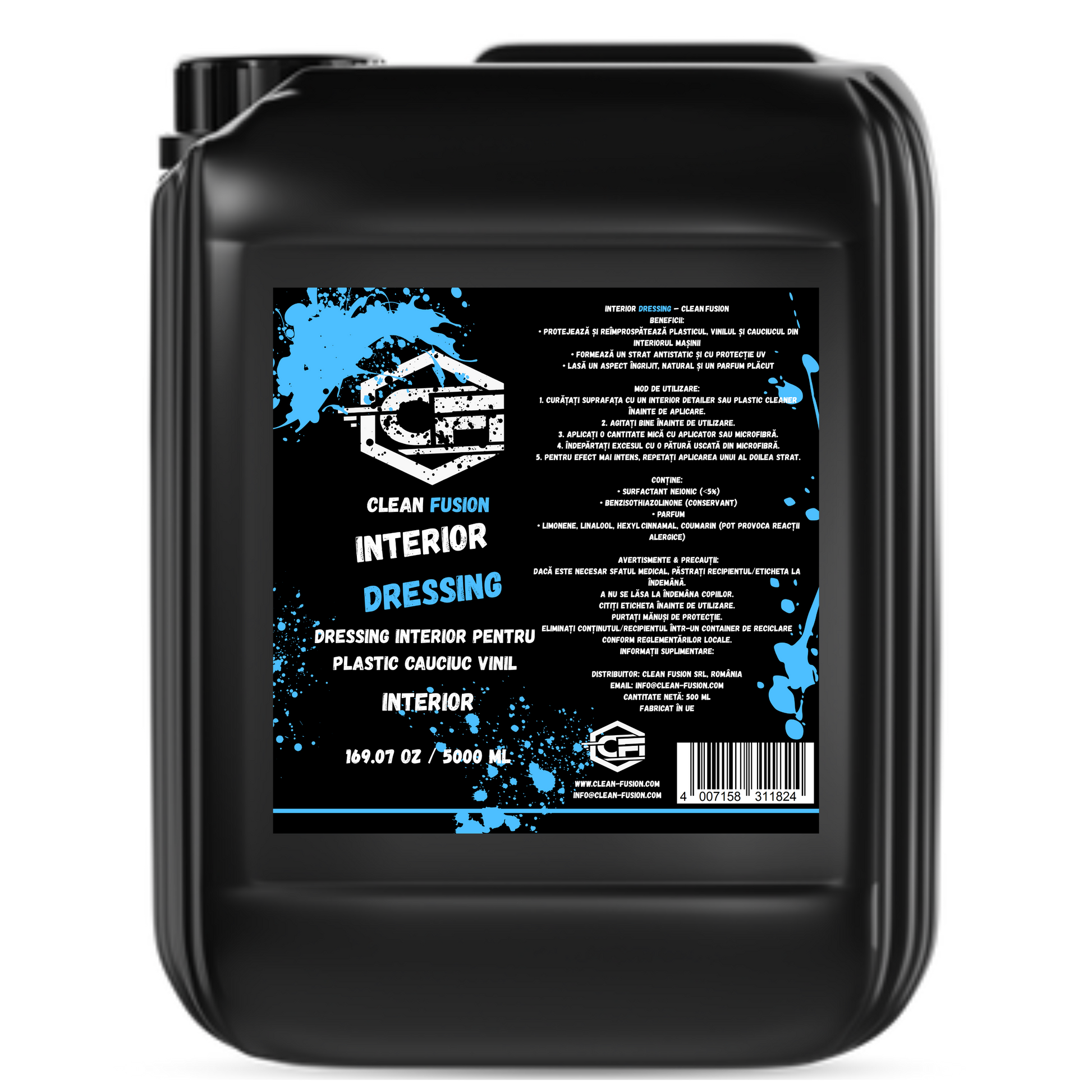 Transformă interiorul mașinii tale cu un dressing profesional, ideal pentru plastice, vinil și cauciuc. Redă culoarea originală, oferă protecție UV și lasă în urmă un parfum plăcut și masculin.